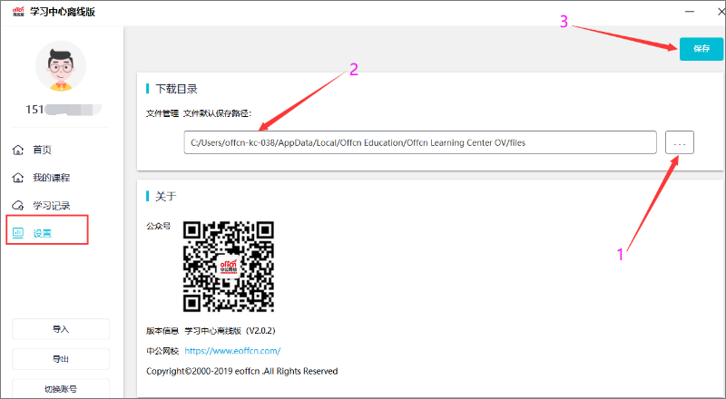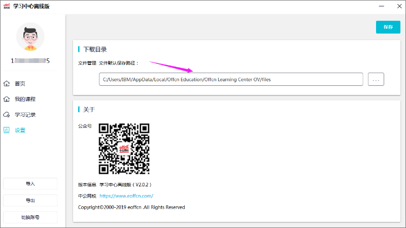 (1)查看下载目录:点击设置,在下载目录中“文件默认保存路径”为用户下载视频/pdf/zip压缩包的存储目录。