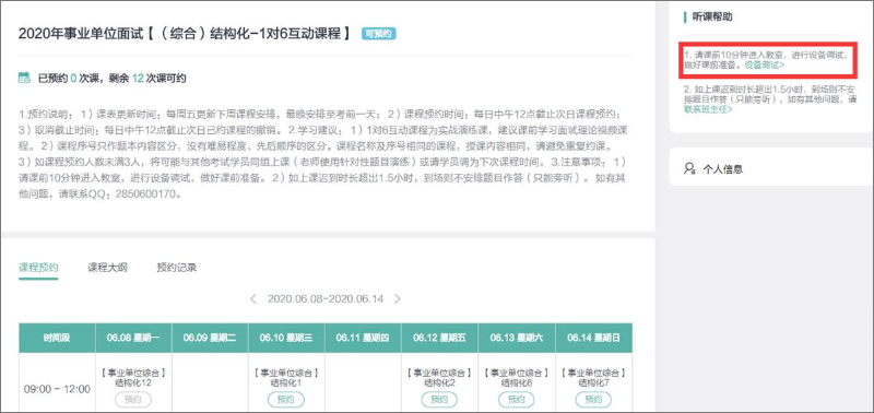 2.注意课程预约中说明的重要提示