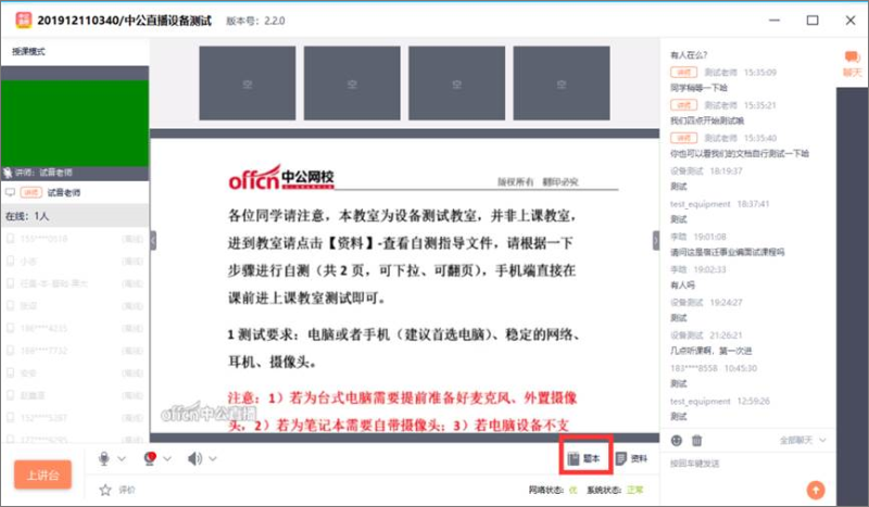 (3)题本: 如考生为"看题形式"的演练方式,主讲老师会把场内题目上传至"题本"。